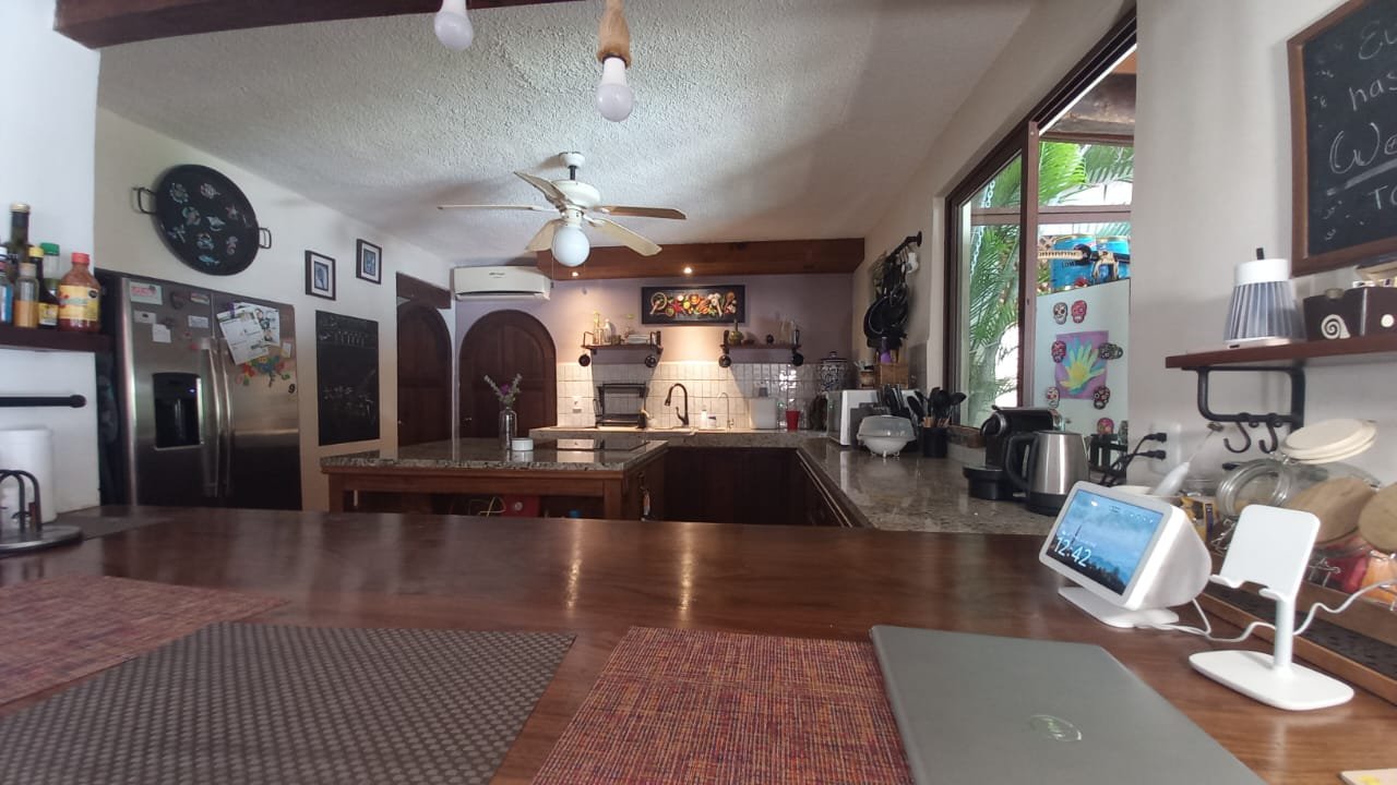 Antes de describir cualquier otra estancia, hay que hablar de la cocina, porque en ella late el alma de esta casa con alberca en Residencial Campestre. Su diseño de circulación fluida conecta visualmente con las áreas de convivencia, permitiéndole cocinar mientras escucha las risas de su familia en el comedor o el jardín. La amplitud generosa permite trabajar en múltiples frentes simultáneamente, y sus acabados funcionales de calidad facilitan tanto la preparación de un desayuno rápido como la elaboración de una cena especial para celebrar momentos únicos. La luz natural que baña este espacio a lo largo del día lo hace sentir vivo, fresco y acogedor en todo momento.