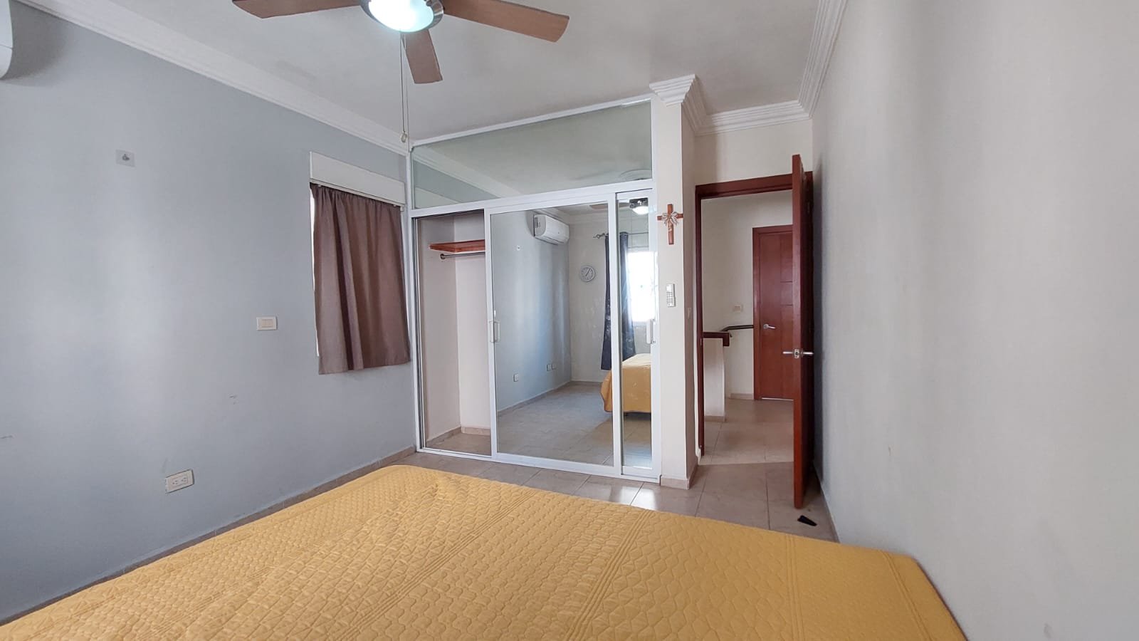La recámara principal ocupa el lugar que le corresponde en una casa pensada para el descanso: el espacio más resguardado, con la amplitud suficiente para una cama matrimonial, área de vestidor y acceso al baño en suite privado. Aquí, el descanso no se negocia con el resto de la casa, tiene su propio territorio, con su propia temperatura gracias al minisplit individual y su propio silencio. Es la recámara donde uno cierra la puerta y el día laboral queda literalmente del otro lado.
