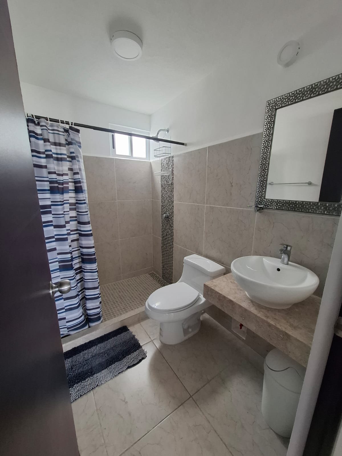 Baño 2: Baño completo de uso compartido para la segunda recámara y visitas. La existencia de dos baños completos en un departamento de dos recámaras no es un lujo: es el estándar mínimo para que dos personas con rutinas distintas no negocien el espejo cada mañana.