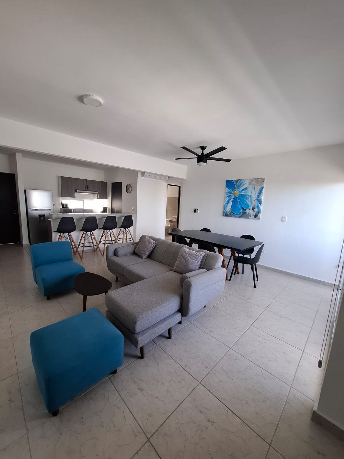 La integración de sala y comedor en este departamento no es una concesión de espacio: es una decisión de diseño que amplifica visualmente cada metro cuadrado. El comedor tiene la proporción para una mesa de seis personas con comodidad, y la continuidad con la sala crea esa sensación de amplitud que se percibe desde el momento en que se abre la puerta principal. Es el espacio donde se come, pero también donde se conversa, donde se trabaja desde casa y donde la vida cotidiana encuentra su centro de gravedad.