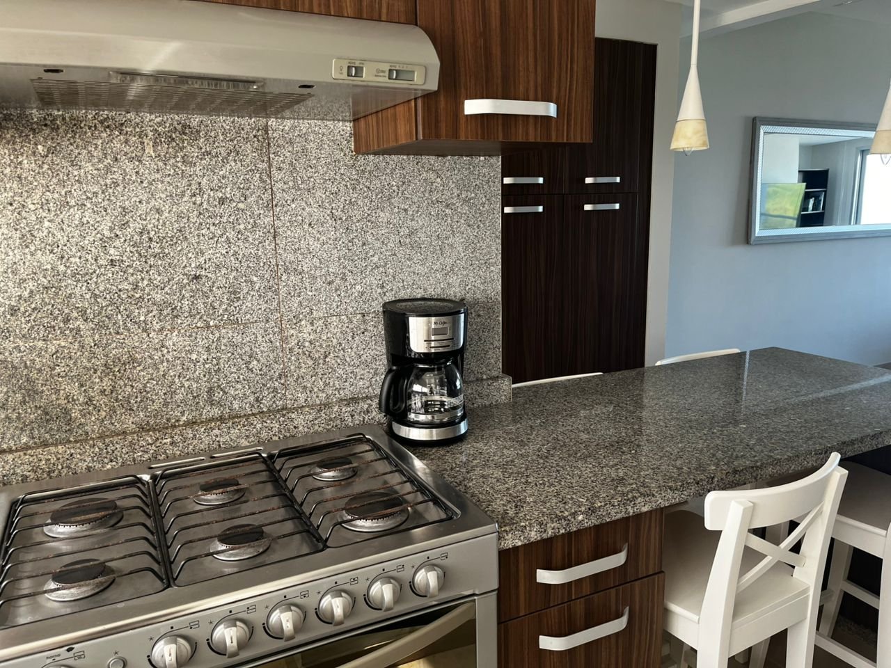 La cocina de este departamento está diseñada para ser habitada, no solo utilizada. Independiente de la sala-comedor, ofrece algo que pocas cocinas en torres verticales logran: la sensación de tener un espacio propio, con límites claros, donde preparar el desayuno del lunes no invade visualmente la conversación del domingo en la sala.